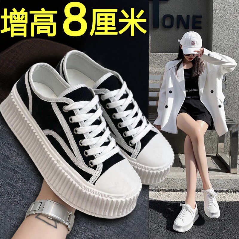 Korean canvas shoes women's summer 2026 new versatile muffins thick-soled white shoes biscuit shoes with height booster shoes