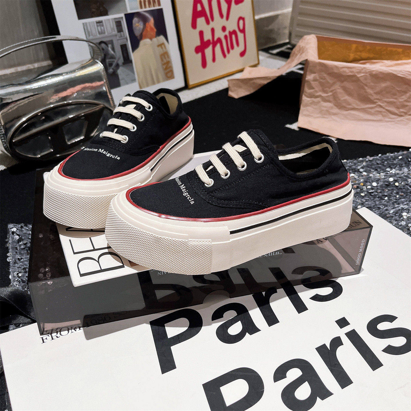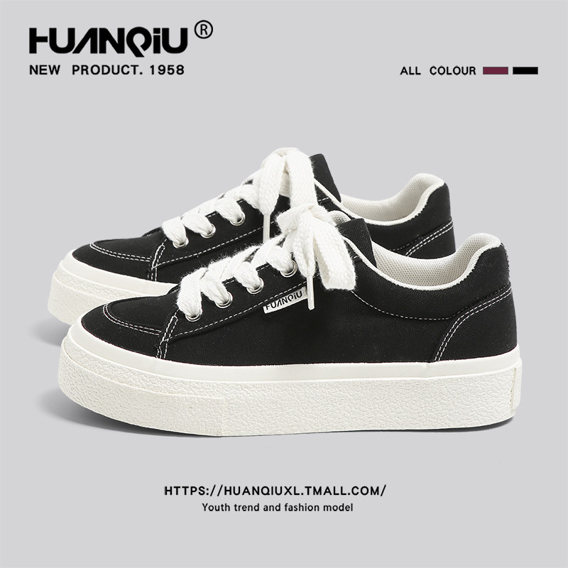 Global Black Canvas Shoes Women's 2026 Spring New Versatile Casual Sports Niche Heightened Thick-soled Shoes