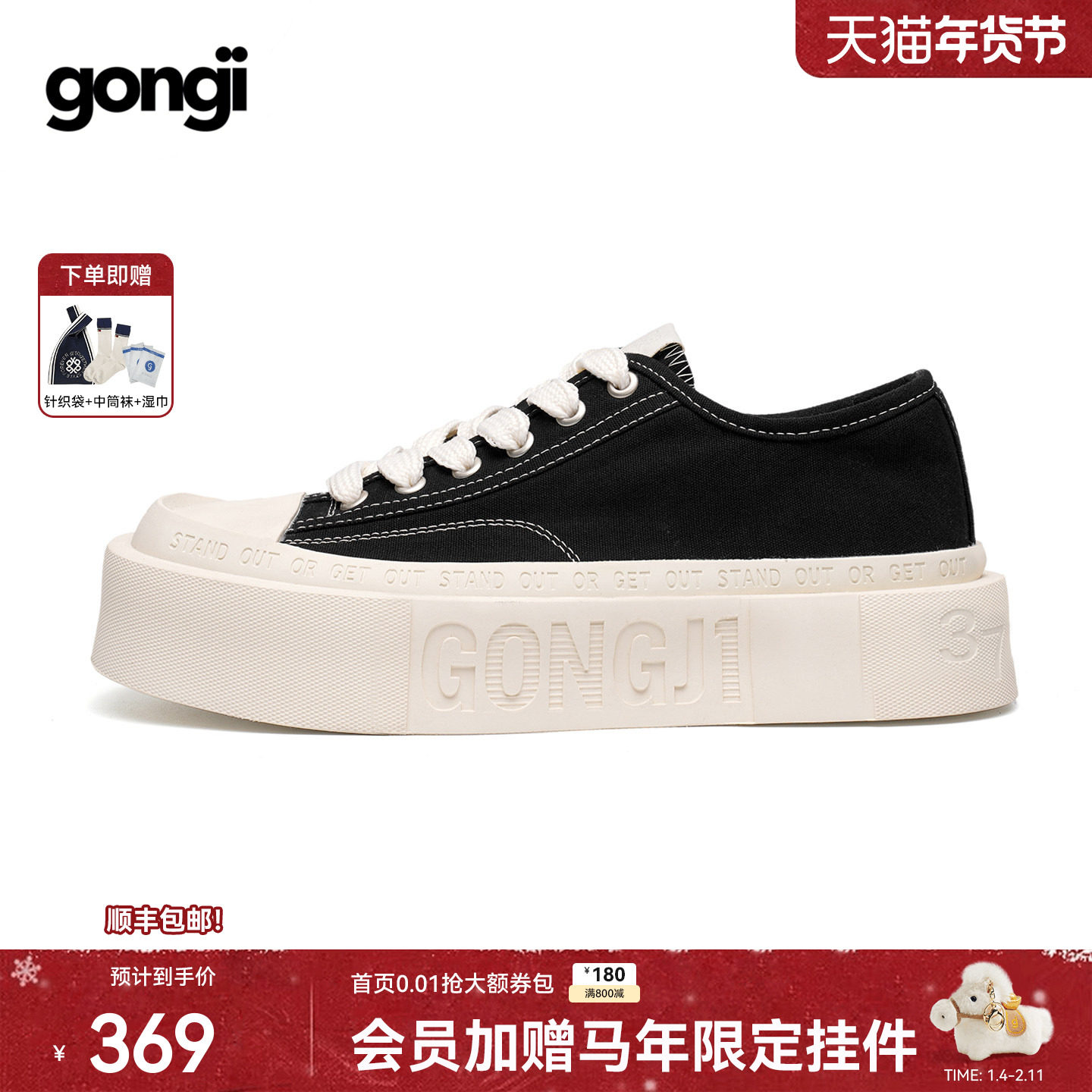 【Mencius Ziyi's same style】GONGJI square-toed platform canvas shoes, women's national trend, niche design board shoes, white shoes