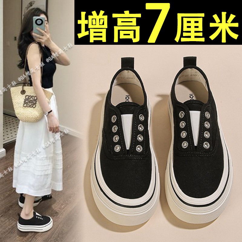 Increase the height by 7cm ~ increase the height of the thick sole and increase the height of the canvas shoes for women in 2026 new slip-on shoes small casual board shoes