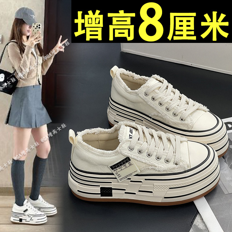 Height increase of 8cm ~ thick sole inner height increase Beggar canvas shoes women's 2026 summer new small muffin casual board shoes