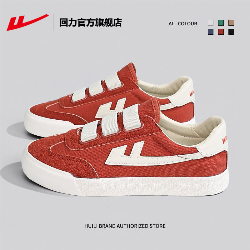 Huili official flagship store red canvas shoes men's shoes 2025 new lazy one-foot pedal tide shoes couple board shoes