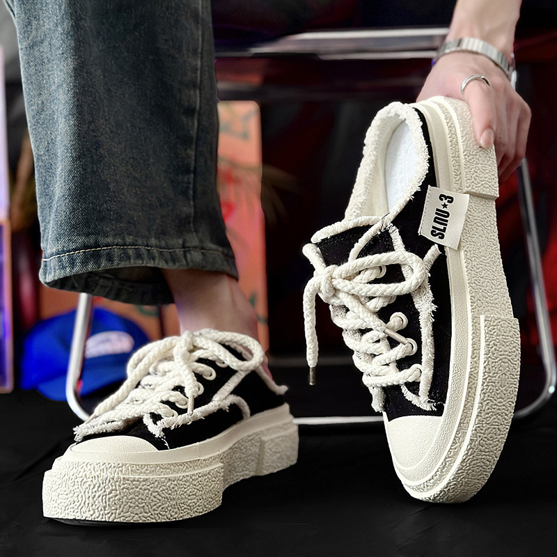Thick-soled breathable half slippers 2025 summer new canvas shoes men's one-foot pedals with a sense of versatile design lazy beggar shoes