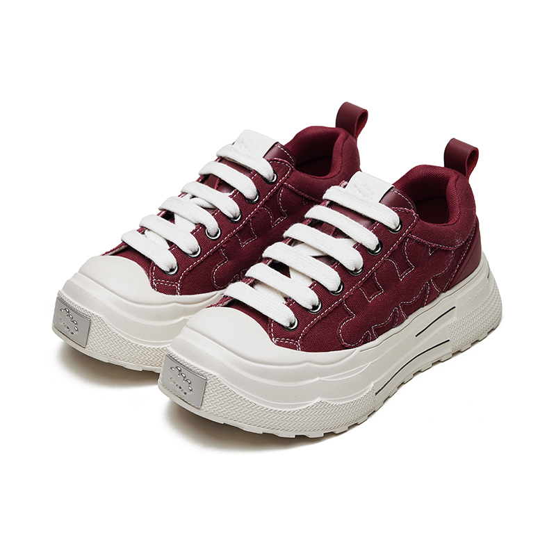【He Haonan's same style】Ouder smiler canvas shoes women's heightened platform burgundy shoes