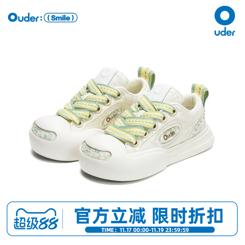 Ouder smiler silk pattern open smile canvas shoes women's low-top round toe casual shoes platform sole heightened big toe shoes