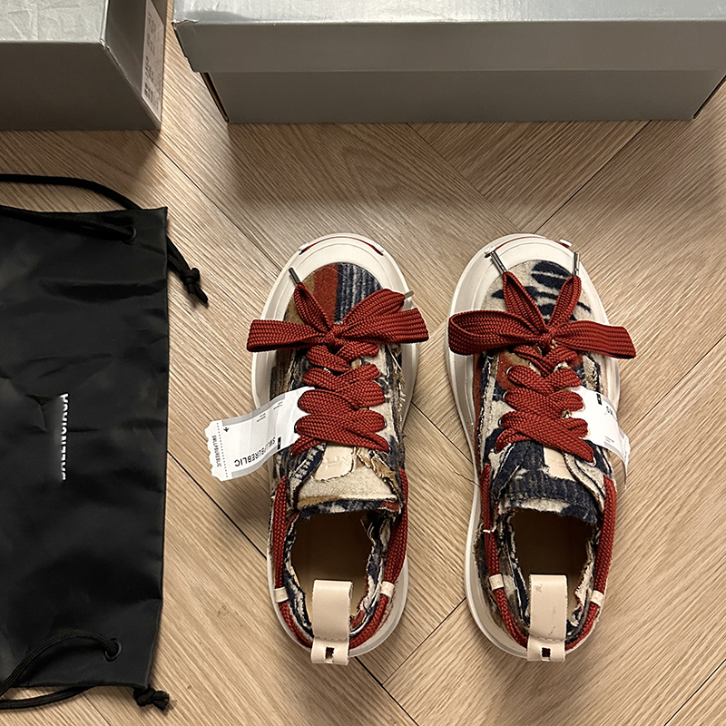 FGMM Mickey Big Toe Shoes Ugly Cute Niche Versatile Casual Canvas Shoes Men's Men's Thick Sole Distressed Design Men's Shoes Trendy Brand