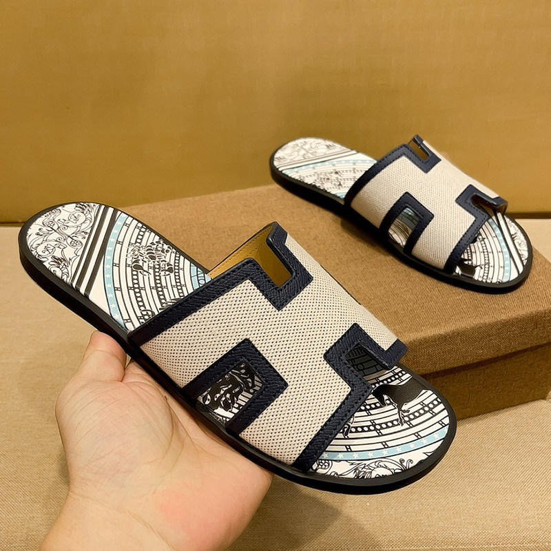 Foreign trade high-end men's slippers 2025 summer fashion wear flat slippers beach cross-strap H slipper sandals
