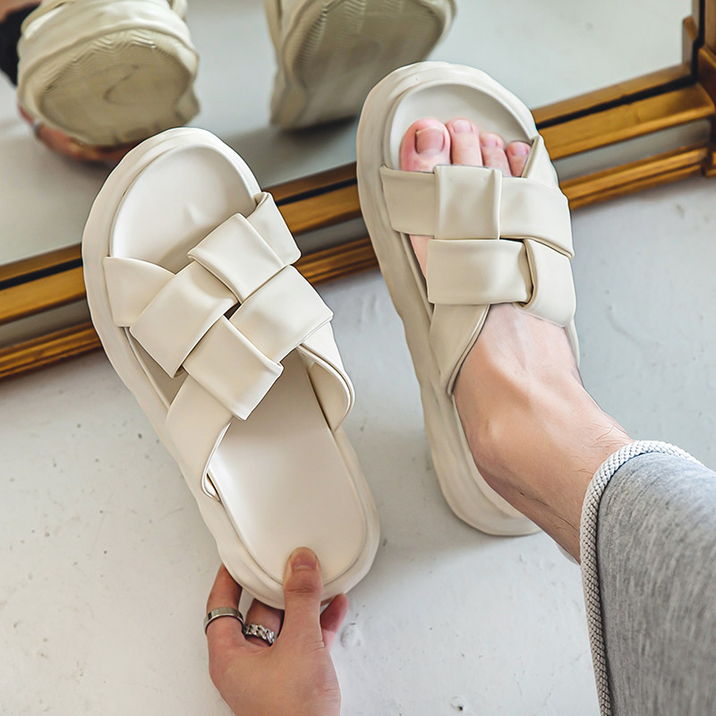 Paris platform half slippers men's summer breathable inward heightened daddy shoes men's wears lazy sandals