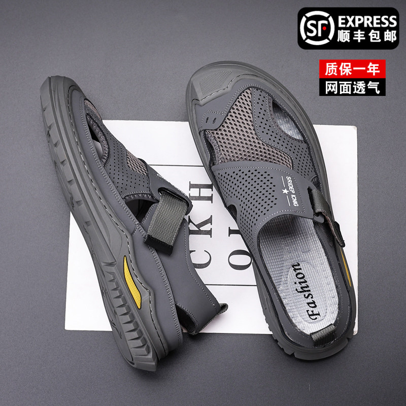 Hole shoes men wear non-slip sports soft-soled dual-purpose toe slippers outside in summer, outdoor beach sandals in summer