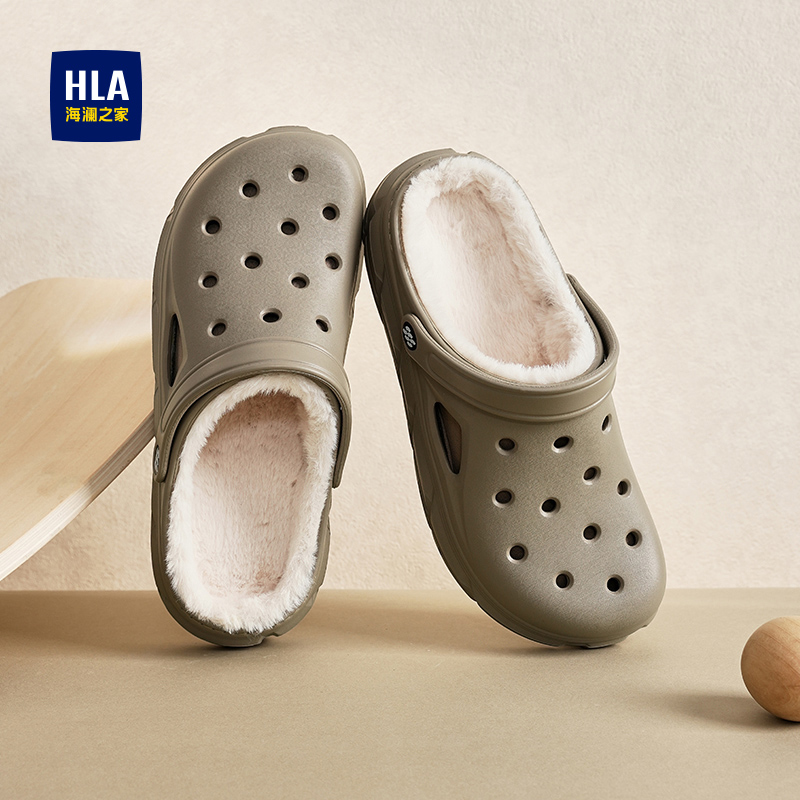 HLA/Heilan Home Men's Shoes New Winter Fashion Casual Plush Hole Shoes Toe Comfortable Slippers Wool Slippers