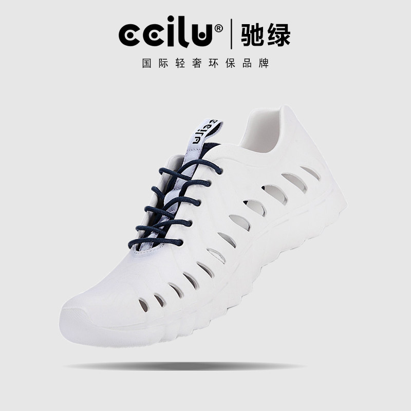 ccilu green lace-up hole shoes for men, toebreakers for women, beach casual shoes for couples, cut-out sandals