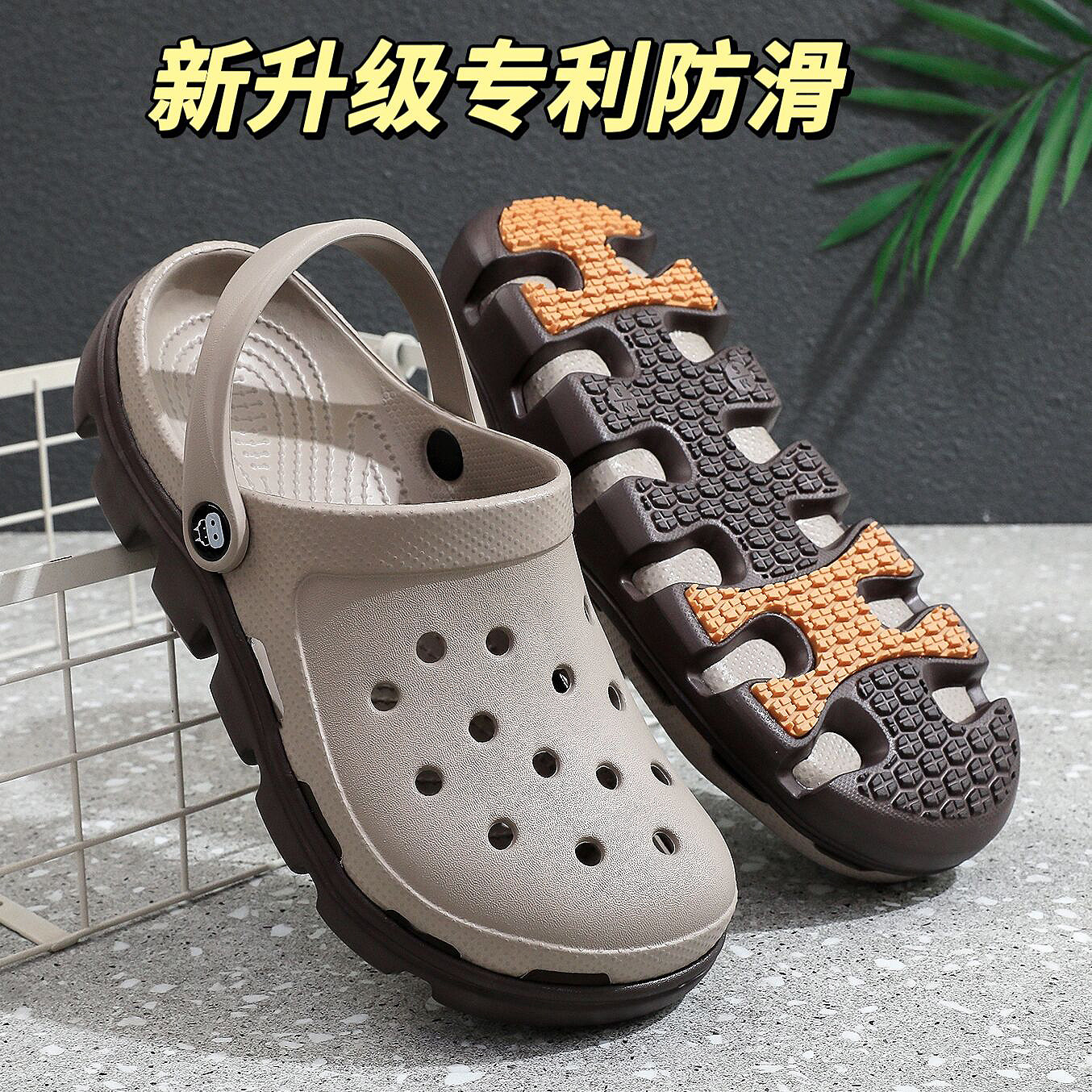 Space slippers, men's hole shoes, summer outdoor non-slip, breathable, thick sole to increase height, step on feeling, fishing, wear beach shoes outside