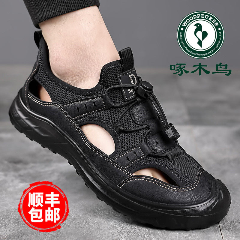 Woodpecker's new summer soft-soled sandals men's hollow breathable mesh hole shoes wear casual beach shoes men's trend