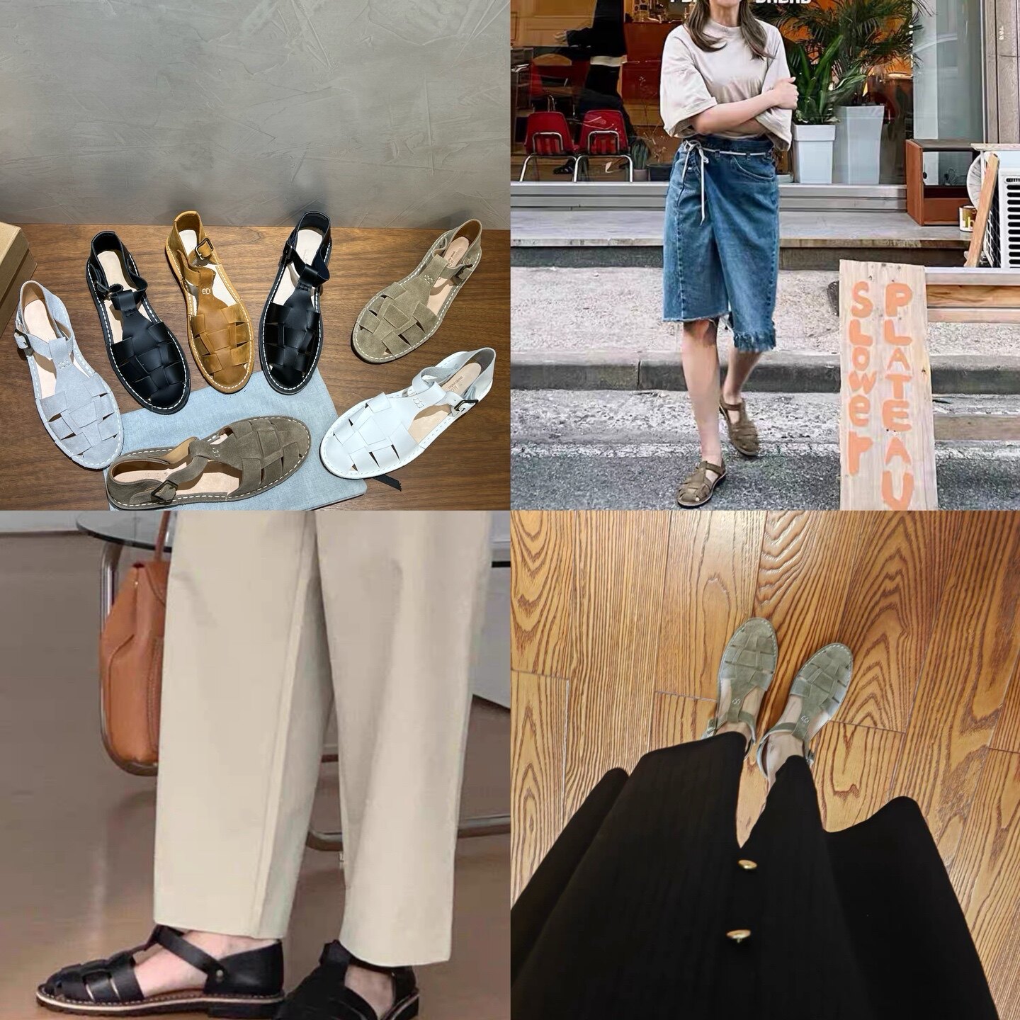 Super soft S~M Goodyear top layer cowhide hand-woven Roman shoes flat sandals women's shoes