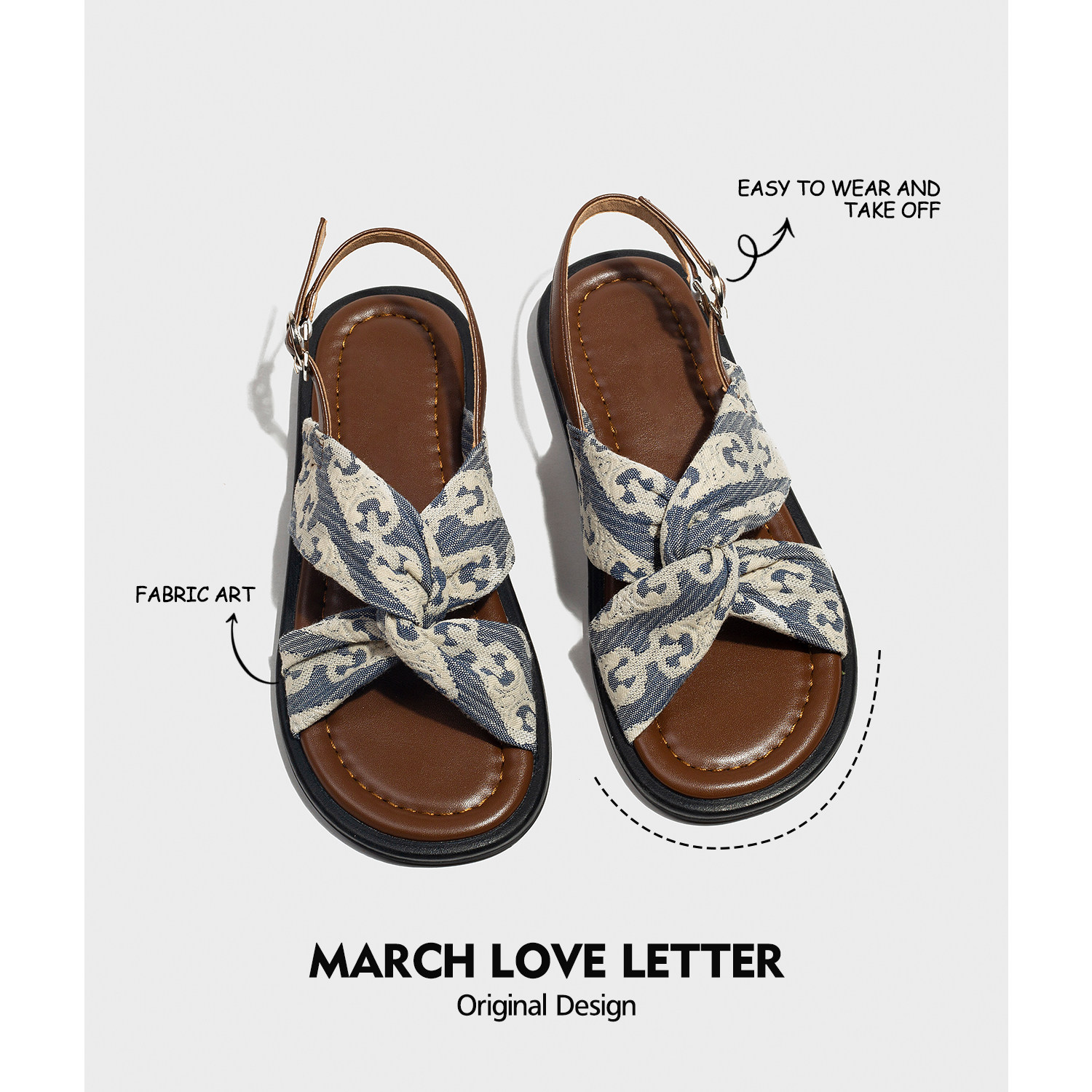 [Limited Price] March Love Letter Cross Strap One-Button Sandals Women's Beach Soft Sole Small Fragrance Wind Sandals
