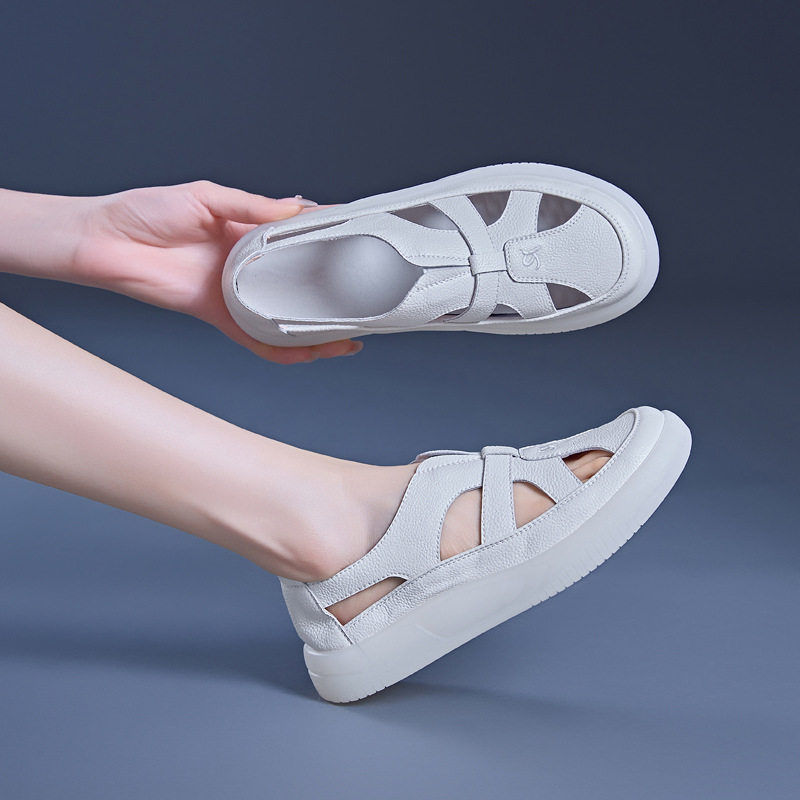 Maternity sandals, women's flats, new leather summer soft soles, head wraps, nurse tendon soles, non-slip hole Roman sandals