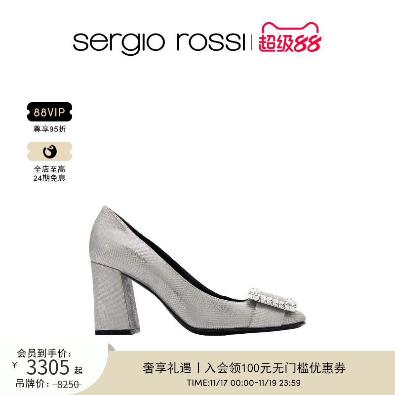 Sergio Rossi/SR Women's Shoes SR PRINCE Simple Diamond Buckle Thick Heel Satin High Heels Wedding Shoes