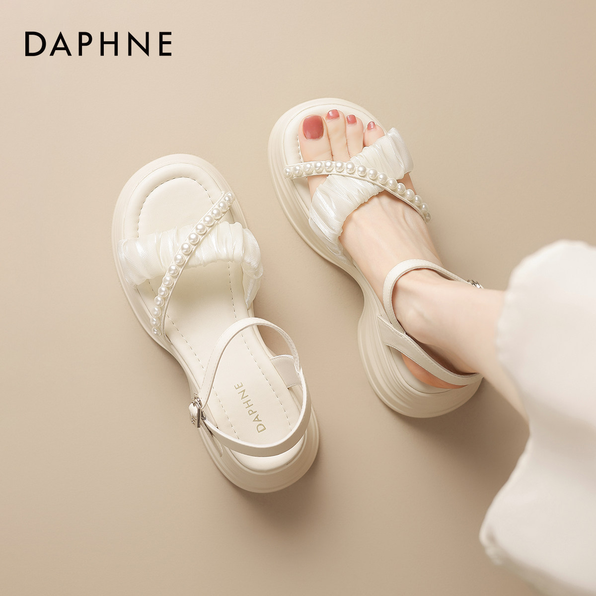 Hong Kong vintage style clip-on leather platform sole strap sandals women's 2026 spring and summer herringbone sandals Roman sandals