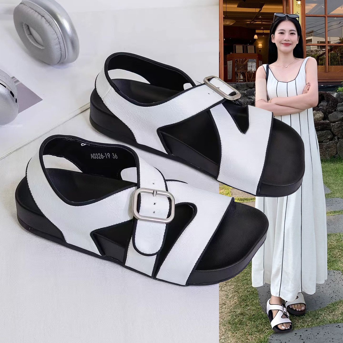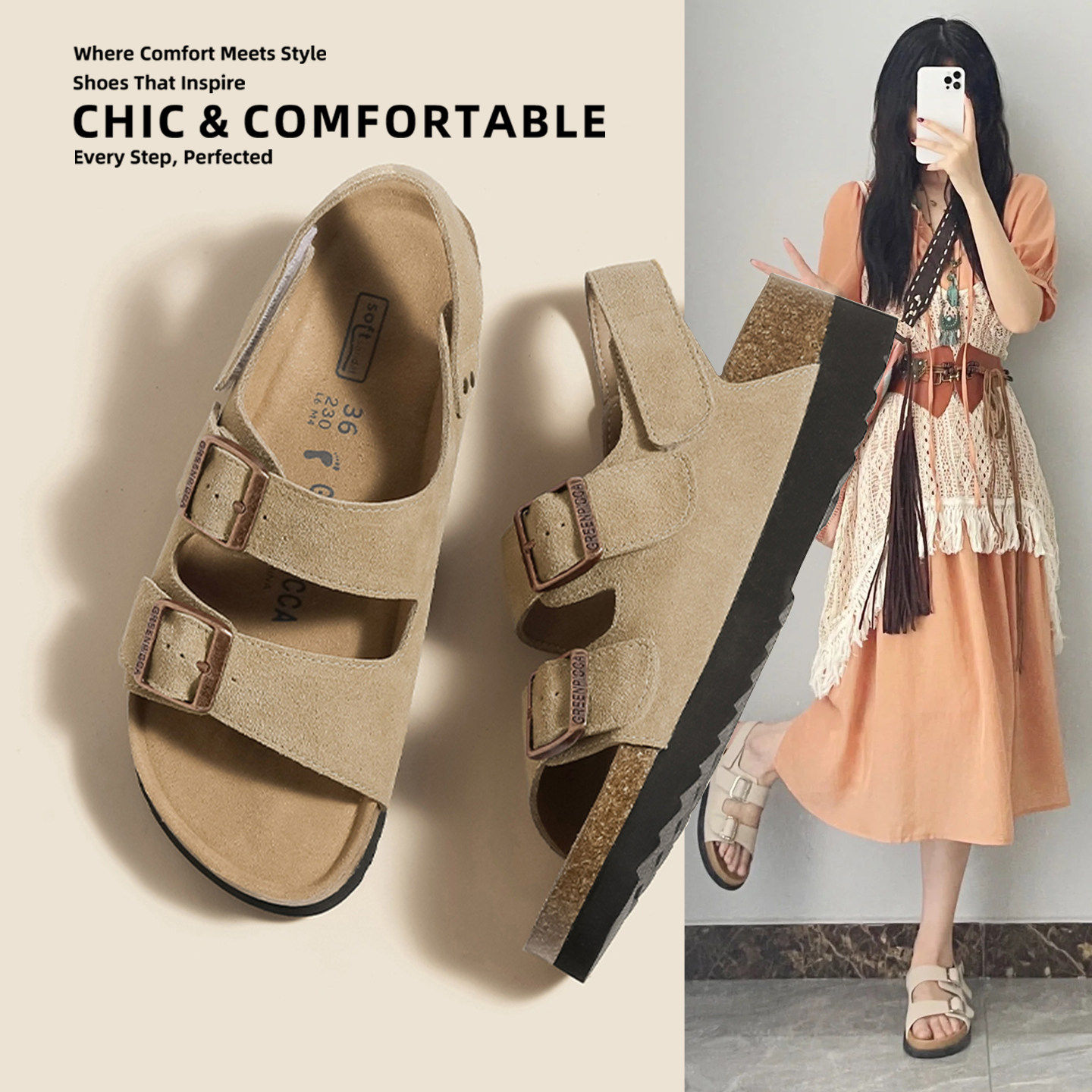 Hong Kong square-toed flat Birkenstock sandals women's 2026 spring/summer explosive lightweight soft-soled comfortable and versatile beach Roman shoes