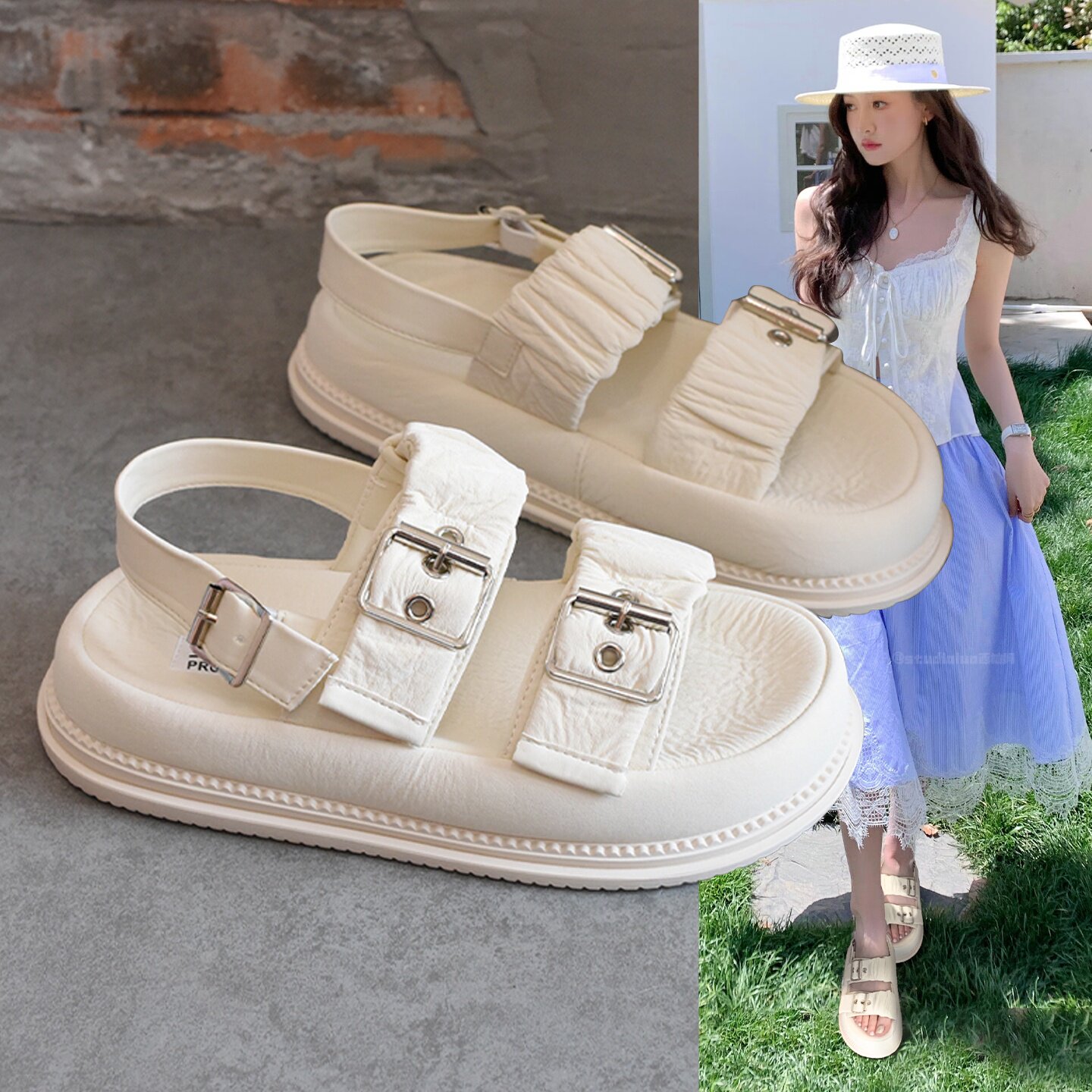 Hong Kong with skirt platform beach shoes women's 2026 spring/summer new casual platform sports fairy style open-toe sandals