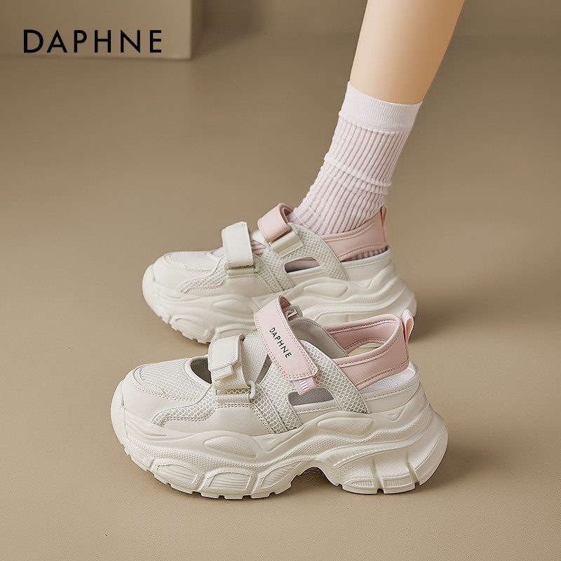 Daphne platform sandals women's 2025 new summer hollow muffin sneakers increase height and breathable river daddy shoes