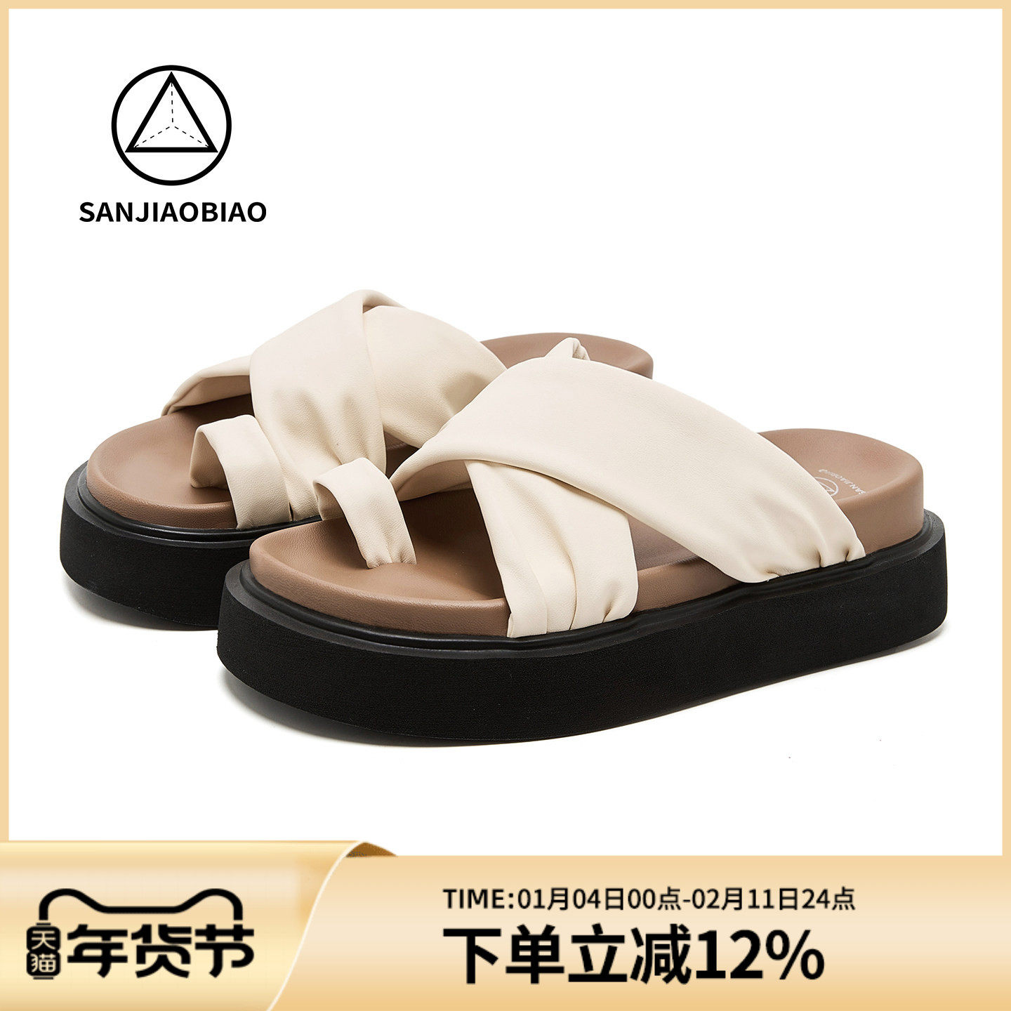 Triangle label platform sandals women's new summer heightened toe cross strap wearing beach shoes sandals flip-flops