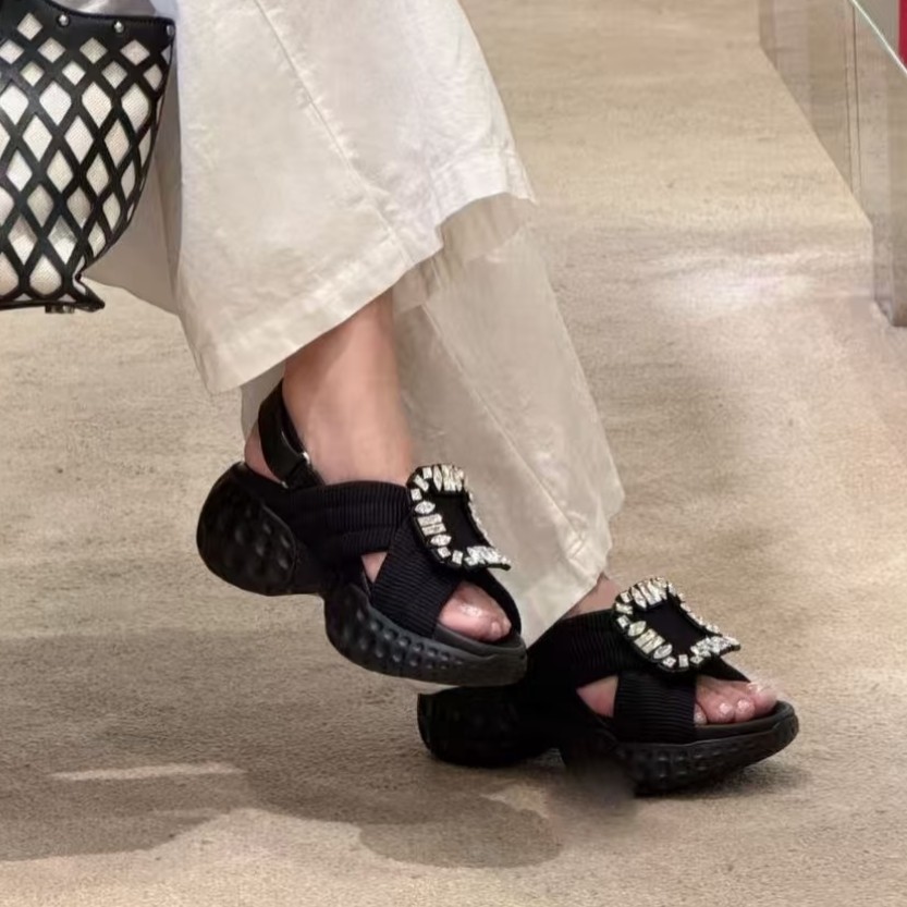 Super soft and comfortable! Summer cross strap heel velcro square buckle rhinestone versatile casual sports sandals for women
