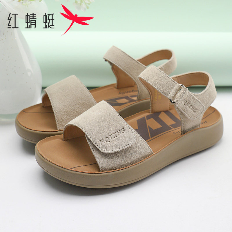 Red Dragonfly Women's Shoes 2026 Summer New Retro Birkenstock Casual Sports Flat Velcro Soft Sole Beach Shoes