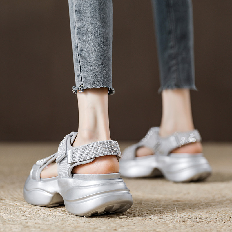 Daddy Sandals Women's Platform Height Increase Athleisure Sandals 2025 Summer New Velcro Rhinestone Beach Shoes