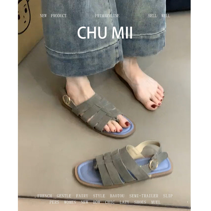 Sheepskin version ~ French retro sandals, women's summer outer wear, seaside casual woven beach shoes, flat open-toe sandals