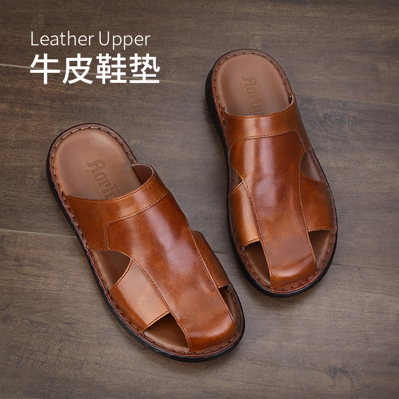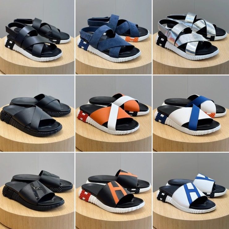 2025 summer new H family leather sandals men's versatile slippers wear beach shoes crossover trendy men's H slippers