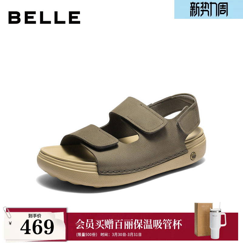 Belle Men's Shoes Breathable Casual Sandals Men's 26 Summer New Cowhide Platform Heightening Sports Beach Shoes 8WK05