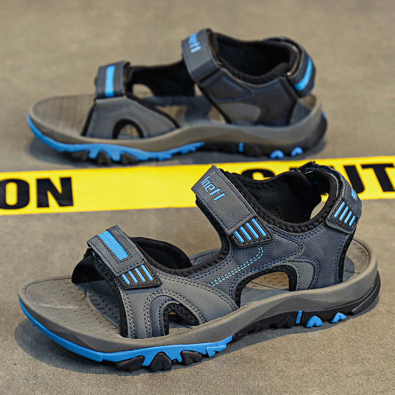 Shuo Men's Breathable Outdoor Sandals Beach Non-Slip Sports Leisure Soft Sole Summer Velcro Anti-odor Does Not Cover Your Feet
