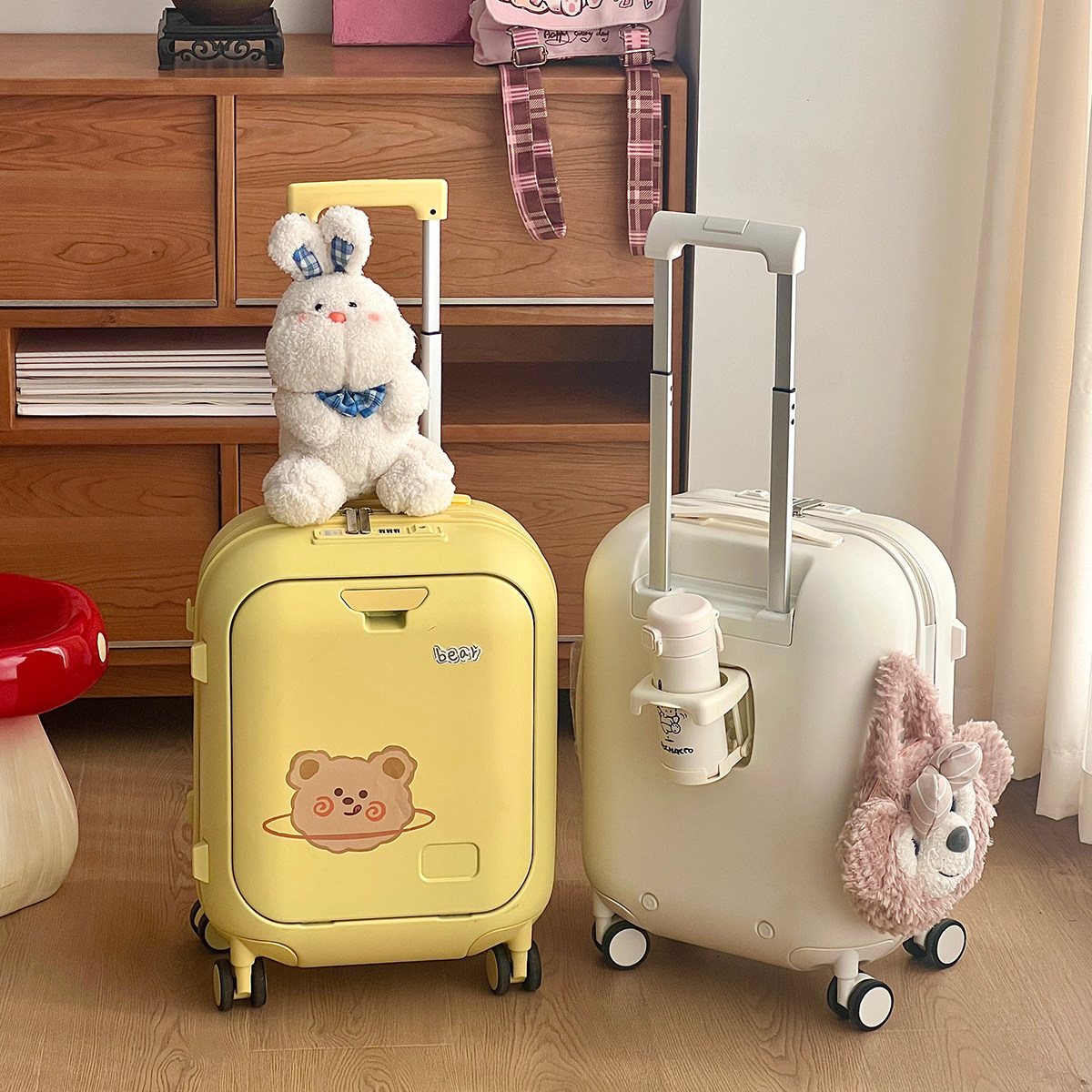 Side opening lid suitcase wide trolley aluminum frame for women 24 inches large capacity expandable lockbox luggage for boys 20 inches