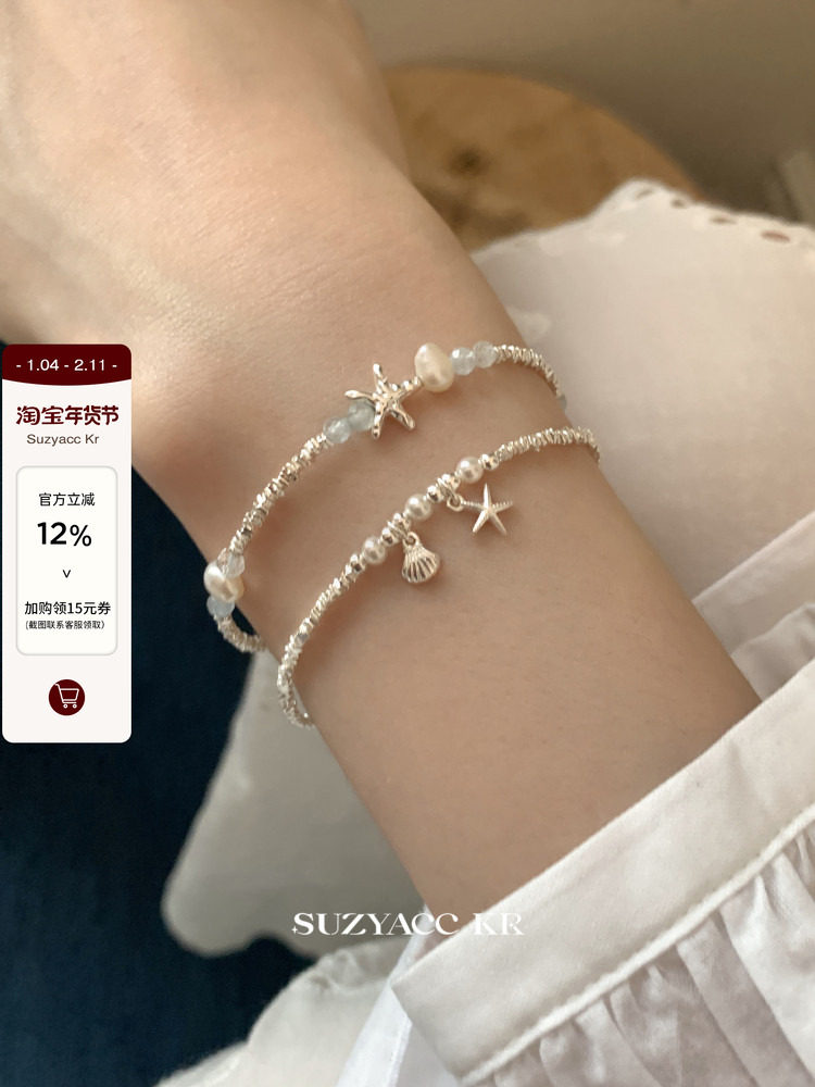 Suzyacc Kr Crushed Silver Shell Sterling Silver Bracelet, Light Luxury Niche Exquisite Beaded Jewelry, Gentle Temperament Bracelet