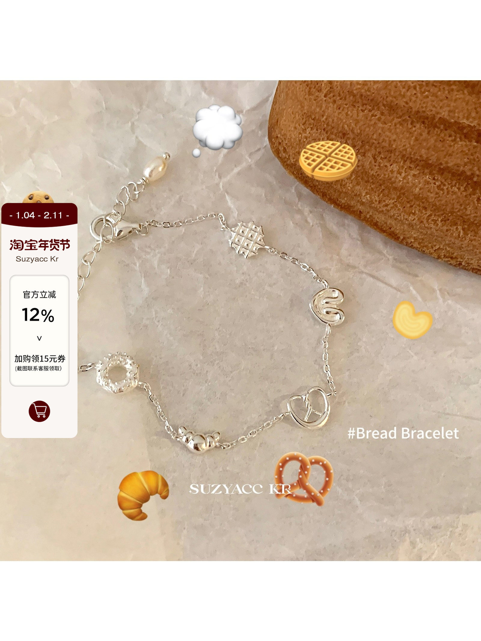 Suzyacc Kr Pure Silver Croissant Alkaline Water Knot Bracelet for Women 2024 New Style ins Niche Design Jewelry