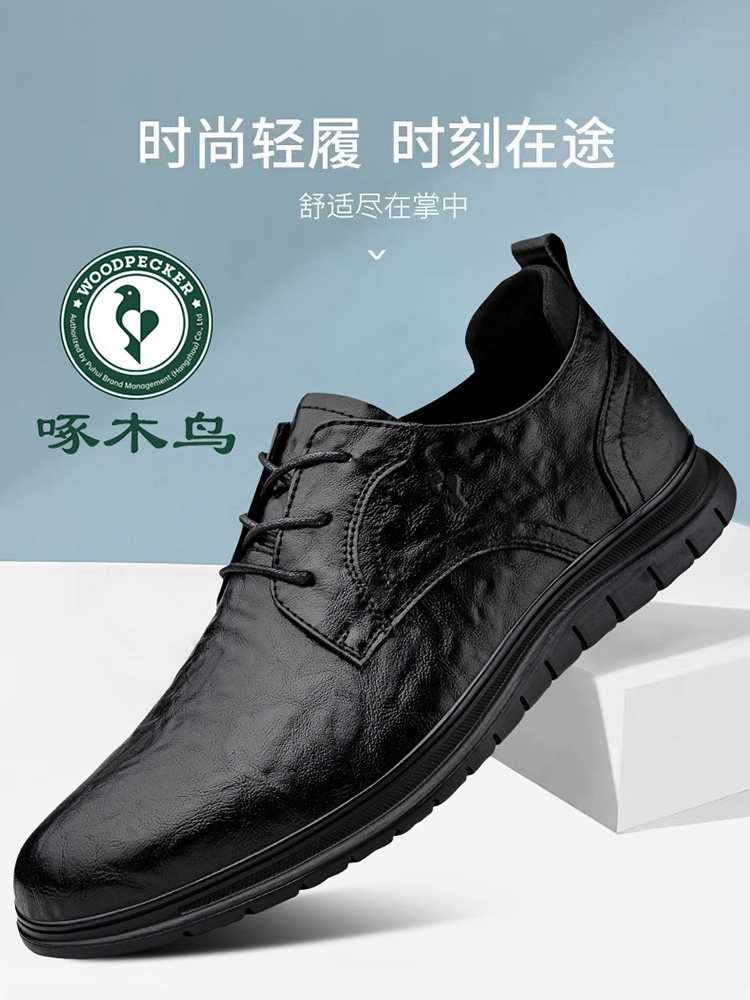 Woodpecker Men's Shoes 2025 Autumn New Men's Leather Shoes Genuine Leather Breathable Casual Shoes Men's Business Formal Leather Shoes