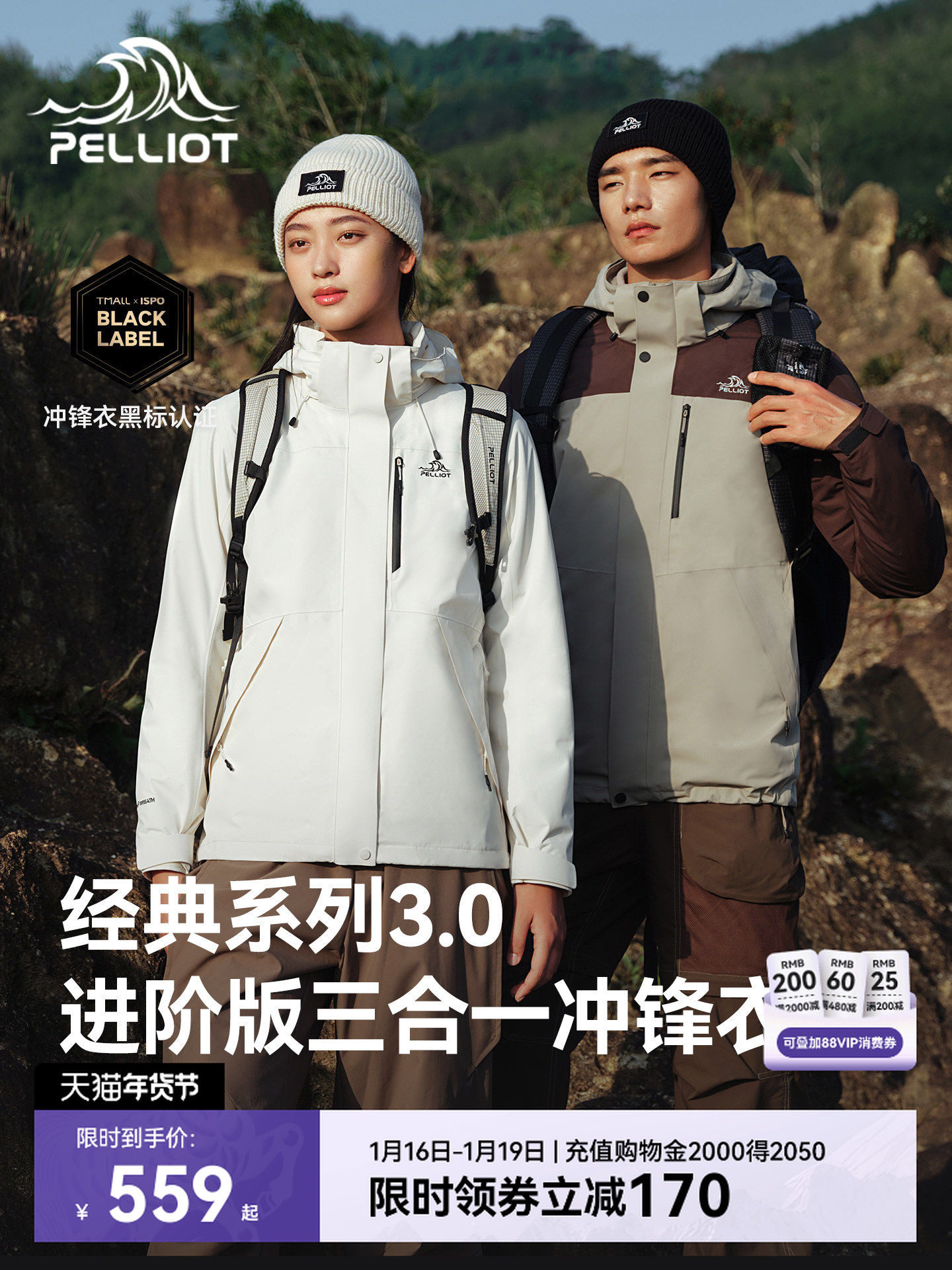 [Classic 3.0] Pelliot Outdoor Jacket 3-in-1 Warm Fleece Liner Windproof Mountaineering Jacket