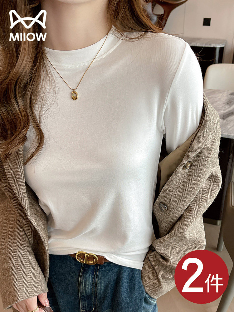 Modal White Base Layer Shirt for Women, Autumn and Winter, Half-High Collar, Medium Collar, Stand Collar, Inner Layer, 2025 New Long-Sleeve T-Shirt Top