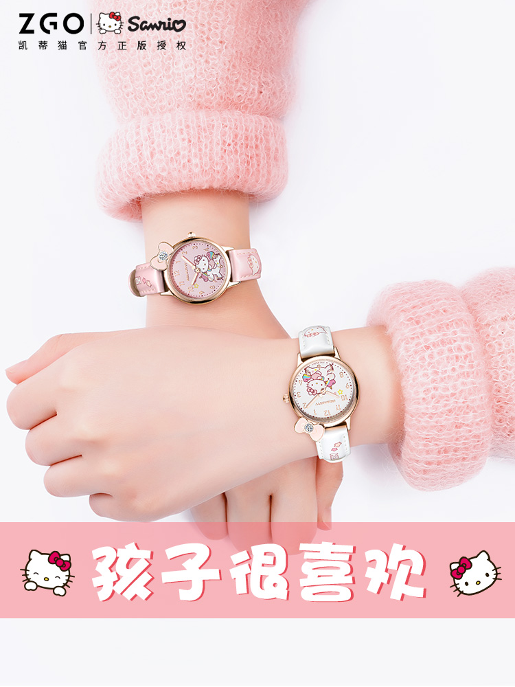 Zgo Sanrio Analog Watch for Children, Girls, Elementary School Students, Hello Kitty Women's Model, Waterproof