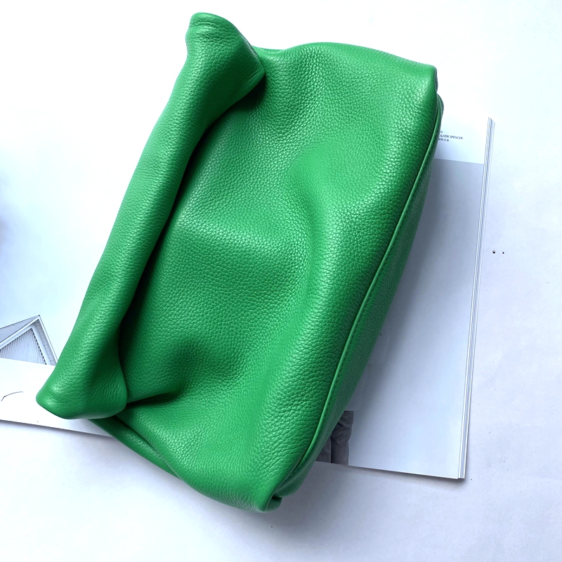 Niche Design Cowhide Pink Large Clutch Bag Stick-Shaped Underarm Clutch Bag Simple Lazy Rolled Edge Large Capacity Clutch Bag