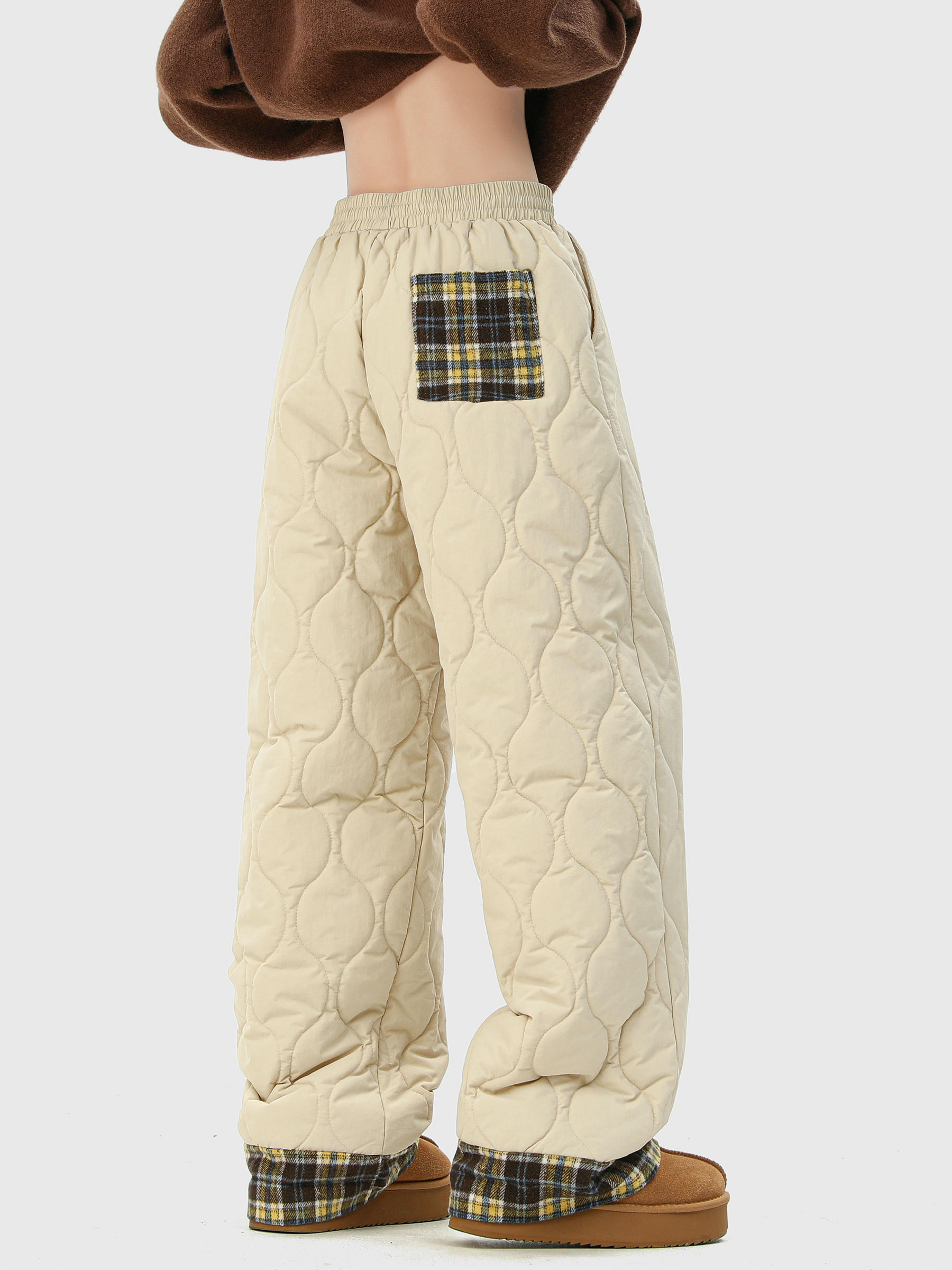 Cuwu Color-Blocked Gourd Pattern Thickened down Cotton Pants for Women and Men, Winter Trendy Brand Loose Snow Pants, Cold-Proof Ski Pants