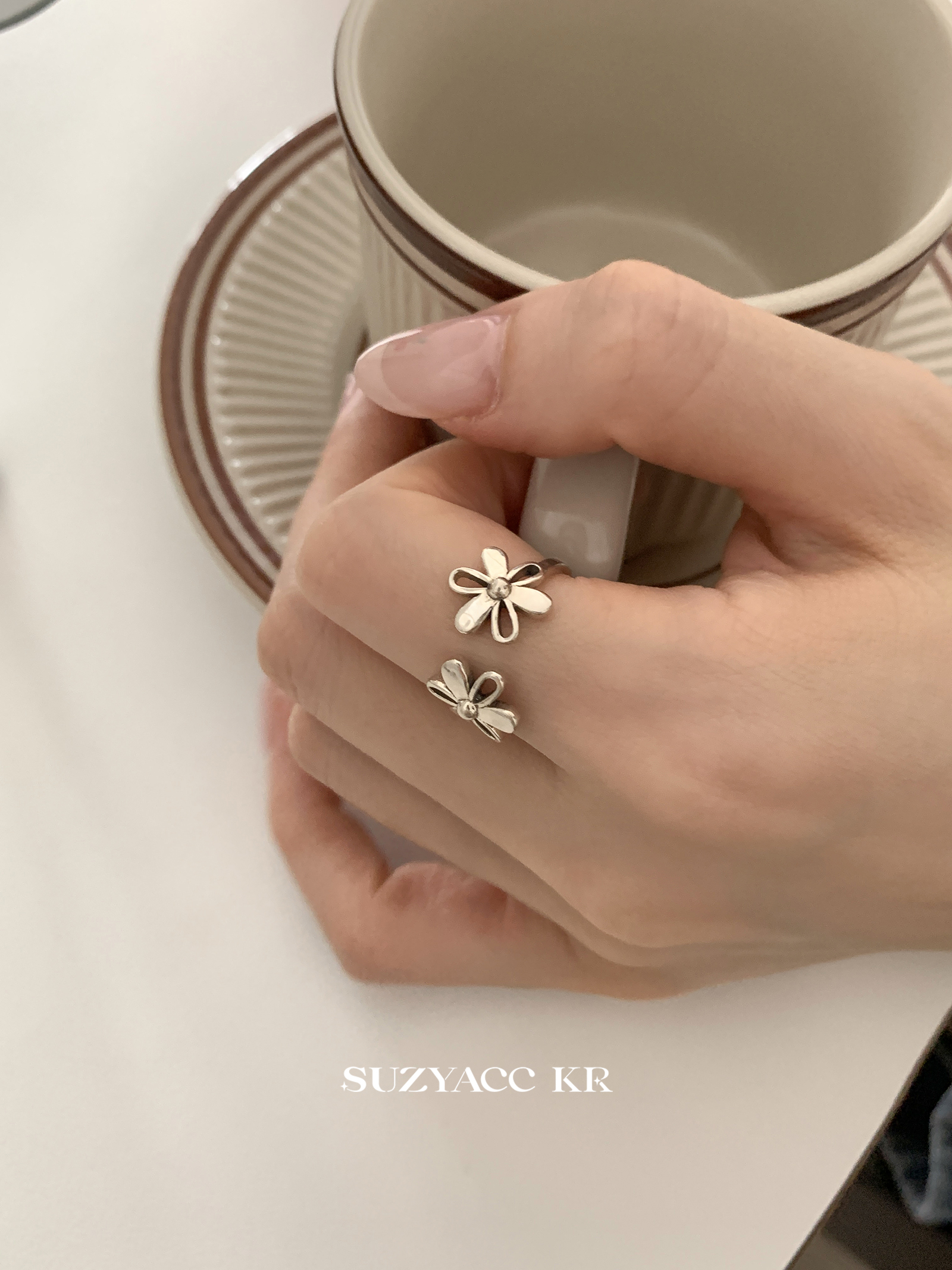 Suzyacc Kr Pure Silver Vintage Flower Ring, Heavy Craftsmanship, Niche Design, Index Finger Ring, Versatile, High-End Feel Ring