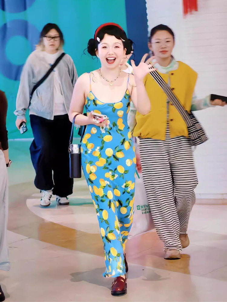 Youni LAOSHU “Southern French Holiday” Summer Printed Slimming Long Dress Vacation Style Spaghetti Strap Dress for Women