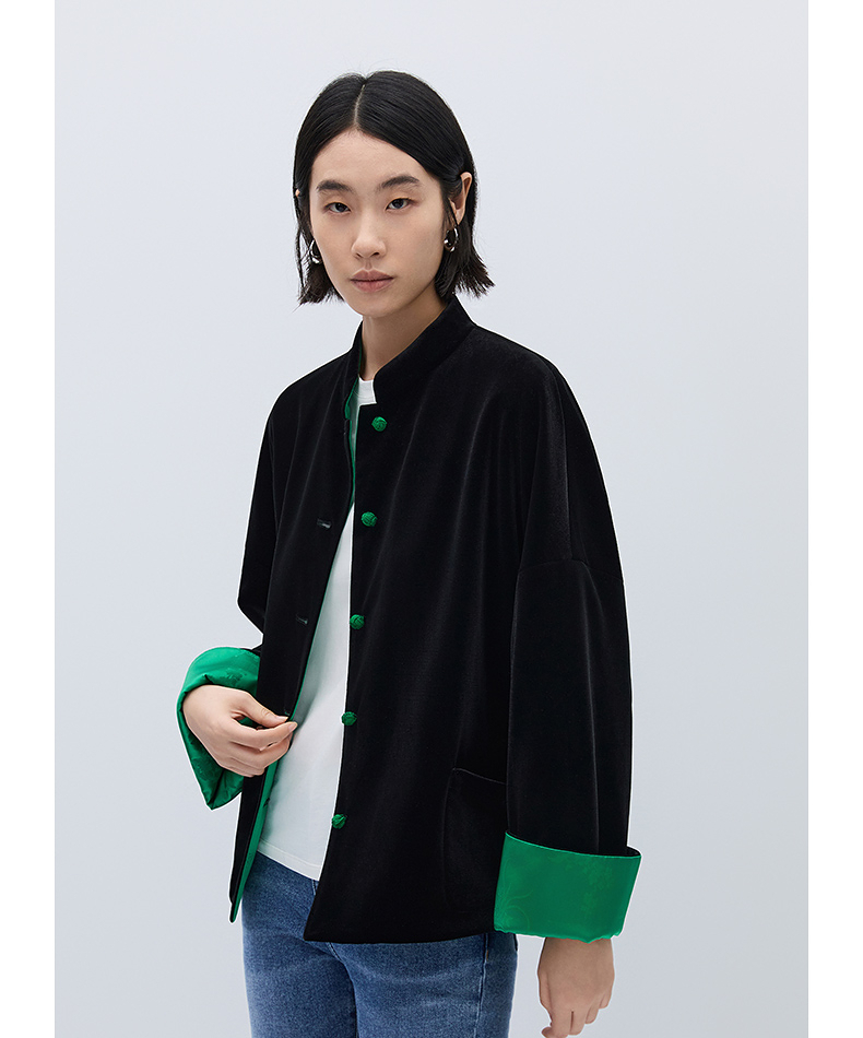 Navitas Stars New Chinese Style Women's Fall and winter Collar Loose Guofeng Jacquard Velvet thickened Short Coat for Women
