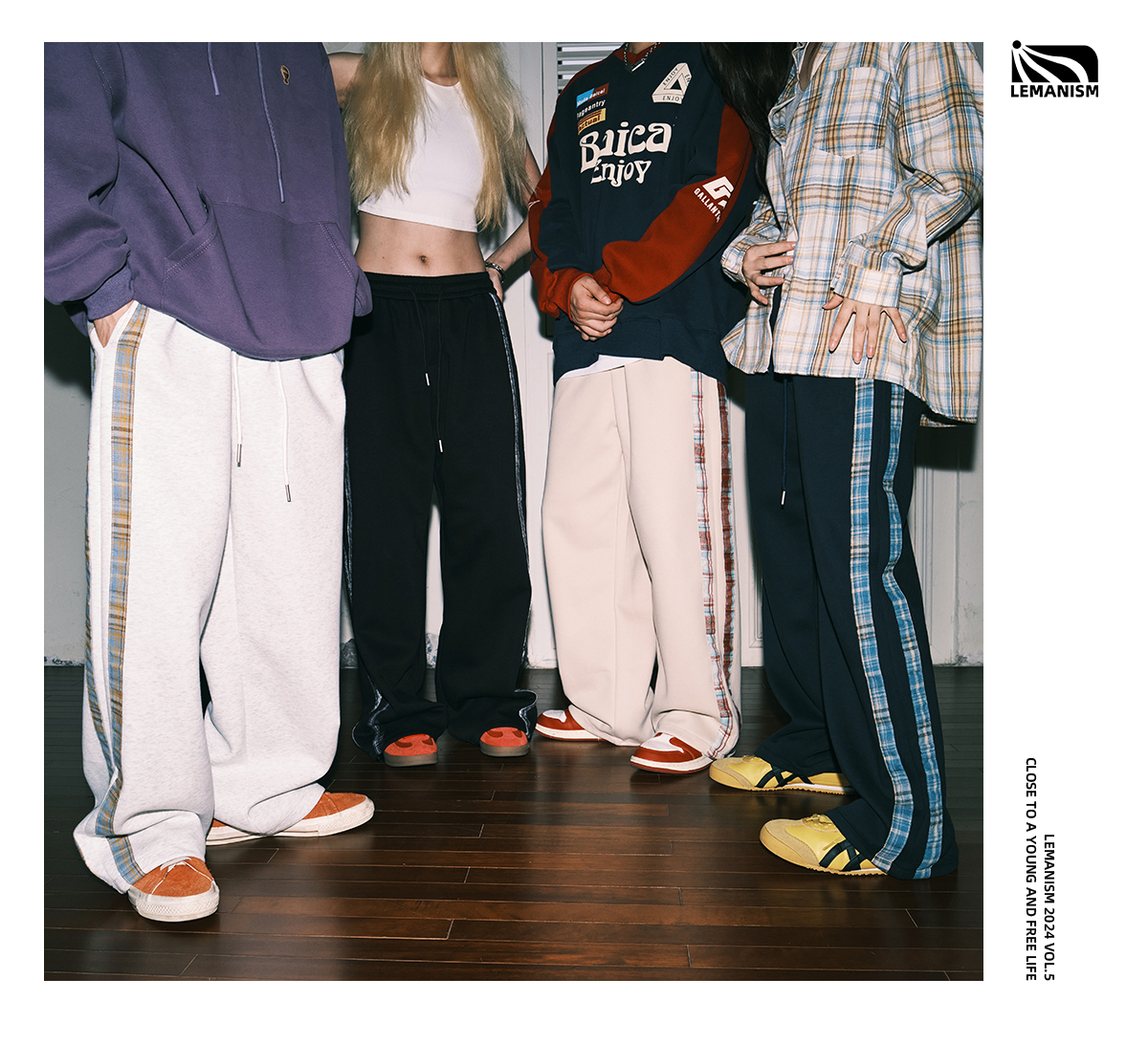 Lemanism Men's Sweatpants 2024 Spring and Autumn Loose Straight Casual Pants Couple Splicing Sports Pants Long Pants Trendy Brand