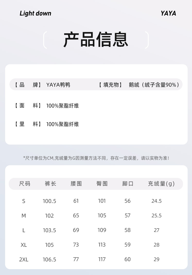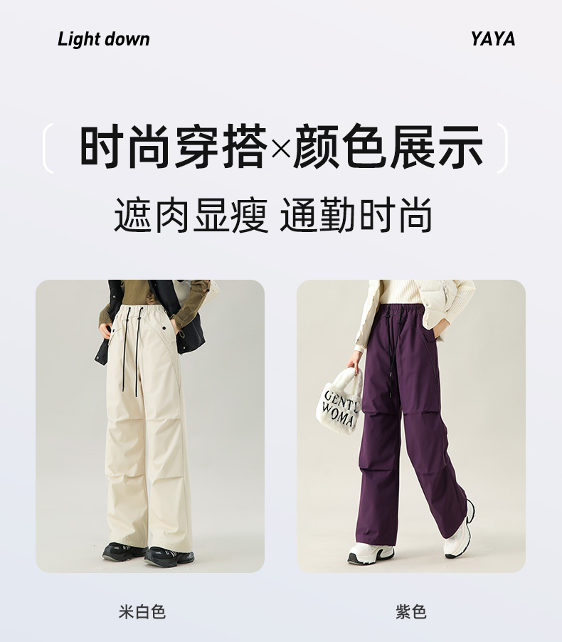 Duck Goose down Outdoor Straight-Leg Workwear down Pants Women's 2024 Winter New High Waisted Wide Leg Ski Pants