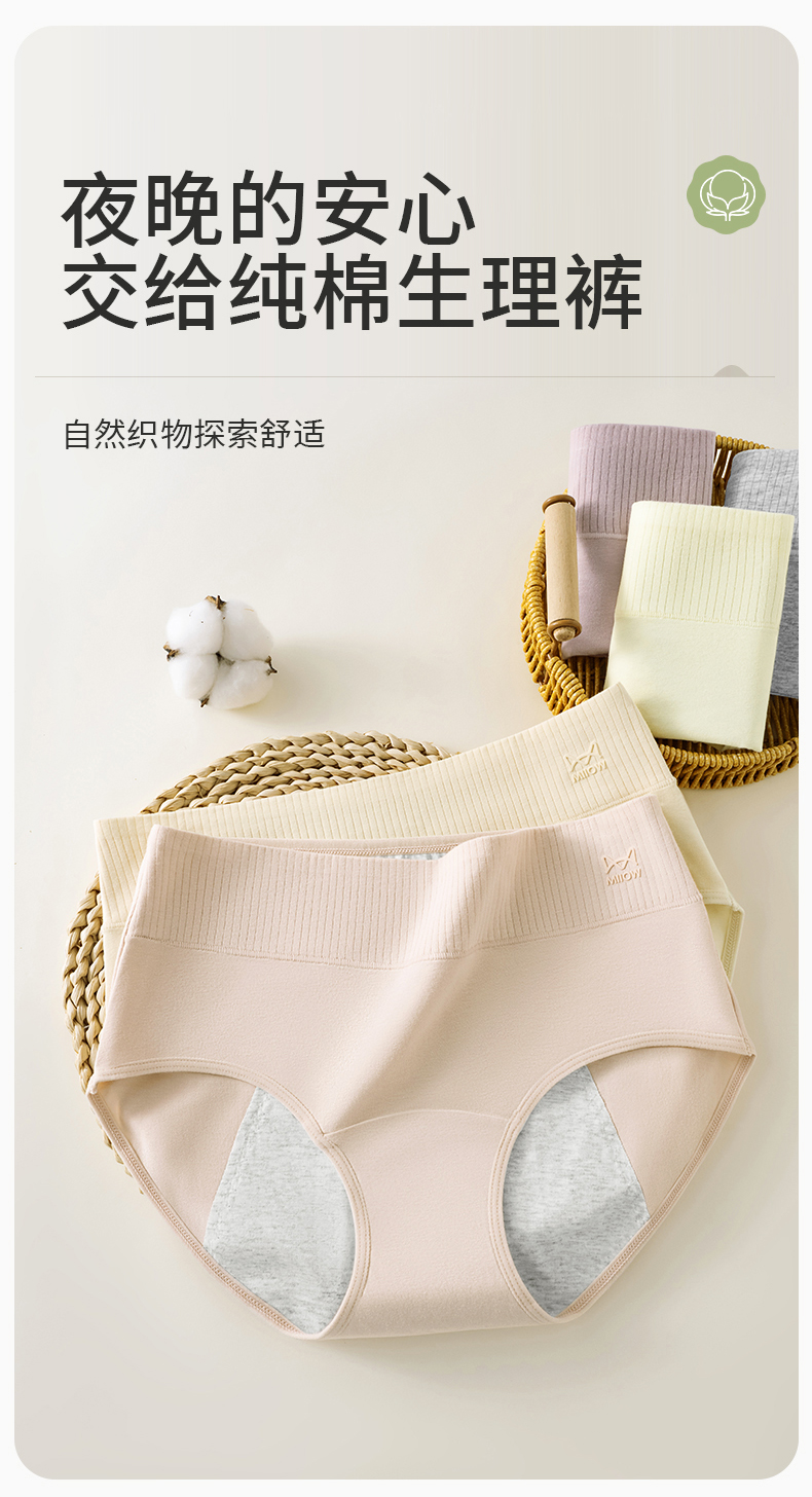 Catman Young Adult Physiological Underwear girl Junior High School Students New arrival pure cotton 7a Antibacterial Abdominal high waist Special for Menstruation