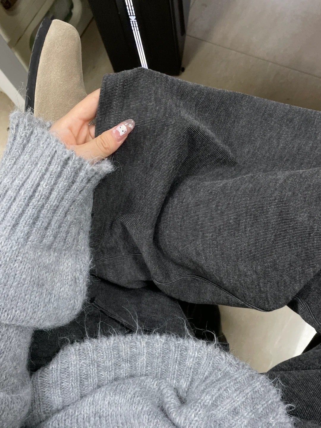 Retro dark gray soft waxy Casual pants Loose bf lazy style drop clean fit Loose pants Mop pants