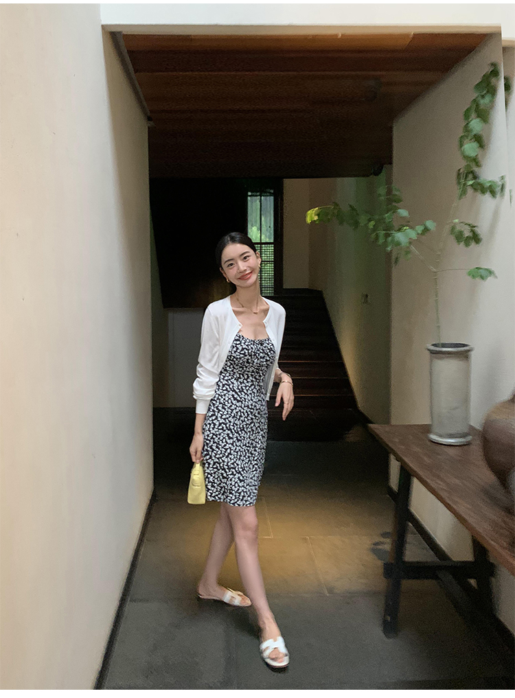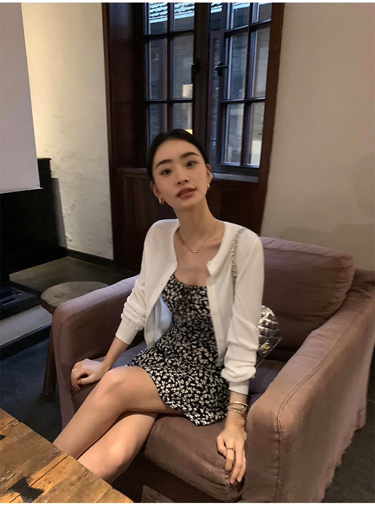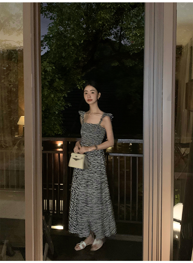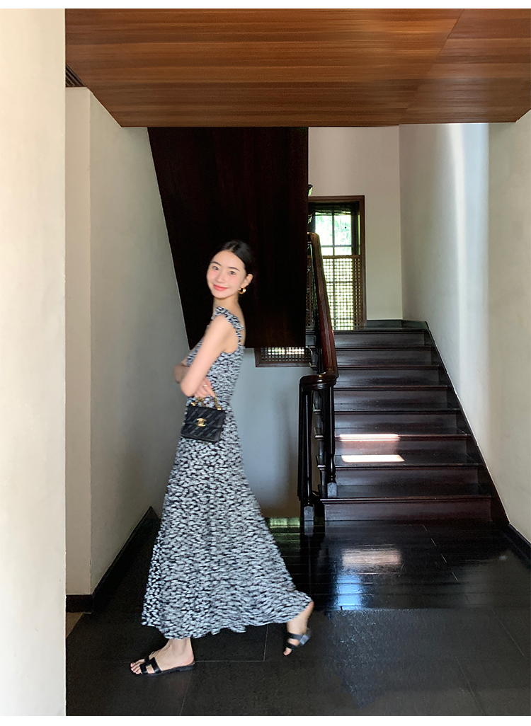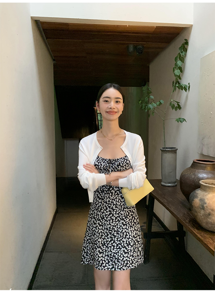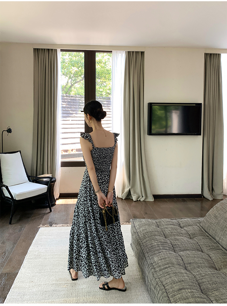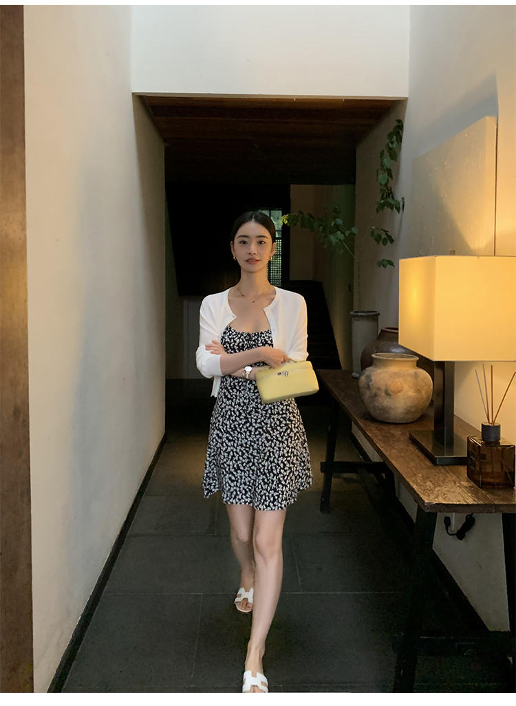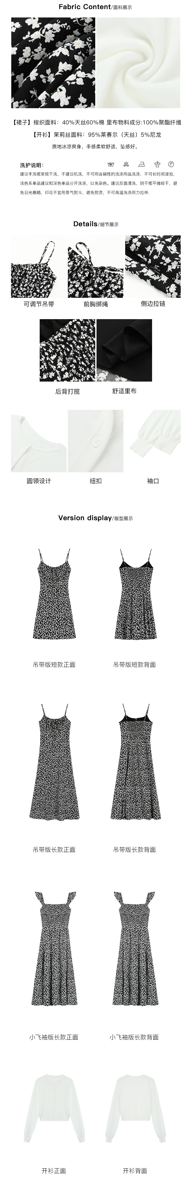 Pusumede French-Style Tea Break Black Floral Dress for Women, Summer 2025, Waist-Cinching, Elegant Spaghetti Strap Dress, Short Style